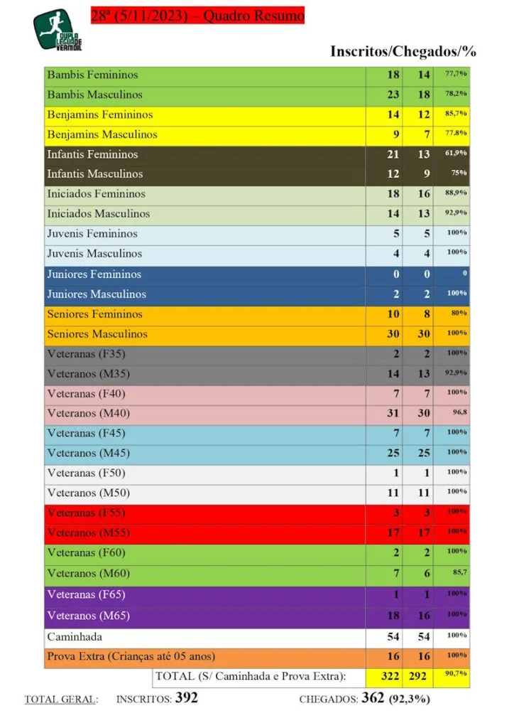 A pedido de alguns atletas , e como, de facto, a inscrição no FPA Competições ‘ignorou’ o sexo, expurgámos uma CLASSIFICAÇÃO GERAL por escalões, que pode ver AQUI