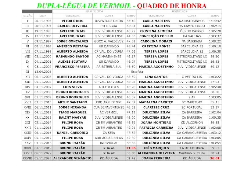 O Alexandre ‘despachou’ os seus adversários – ao que consta – como e quando quis e chegou destacado à meta: 31 minutos e 42 segundos para os 10,2 km; a apenas 7 segundos do Rec da Prova. A Joana, também destacada – só foi vencida por quinze homens – venceu e bateu o RECORDE desta versão da competição, estabelecendo a marca em 36:01.